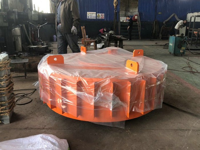 懸掛式電磁除鐵器是一種用于清除粉狀或塊狀非磁性物料中雜鐵的除鐵裝置。其內部采用電工專用樹脂澆注,自冷式全密封結構。具有透磁深度大、吸力強、防塵、防御、耐腐蝕等特點,在惡劣的環境中仍能可靠運行,該產品可除去混雜在非磁性物質中0.1~25公斤的鐵磁性物質。
